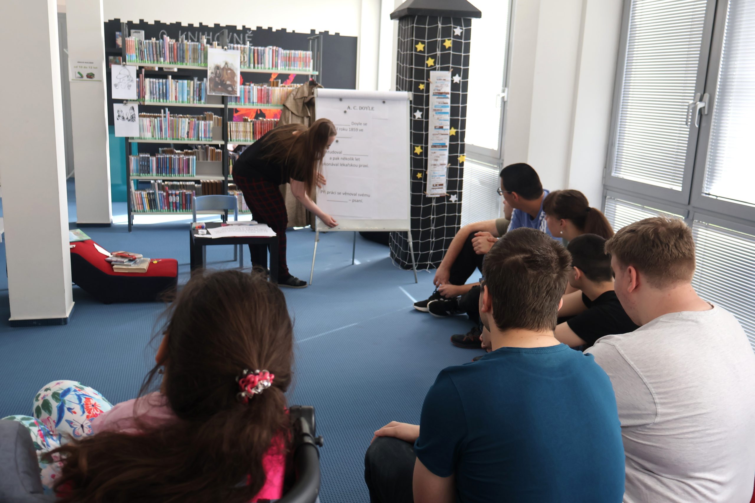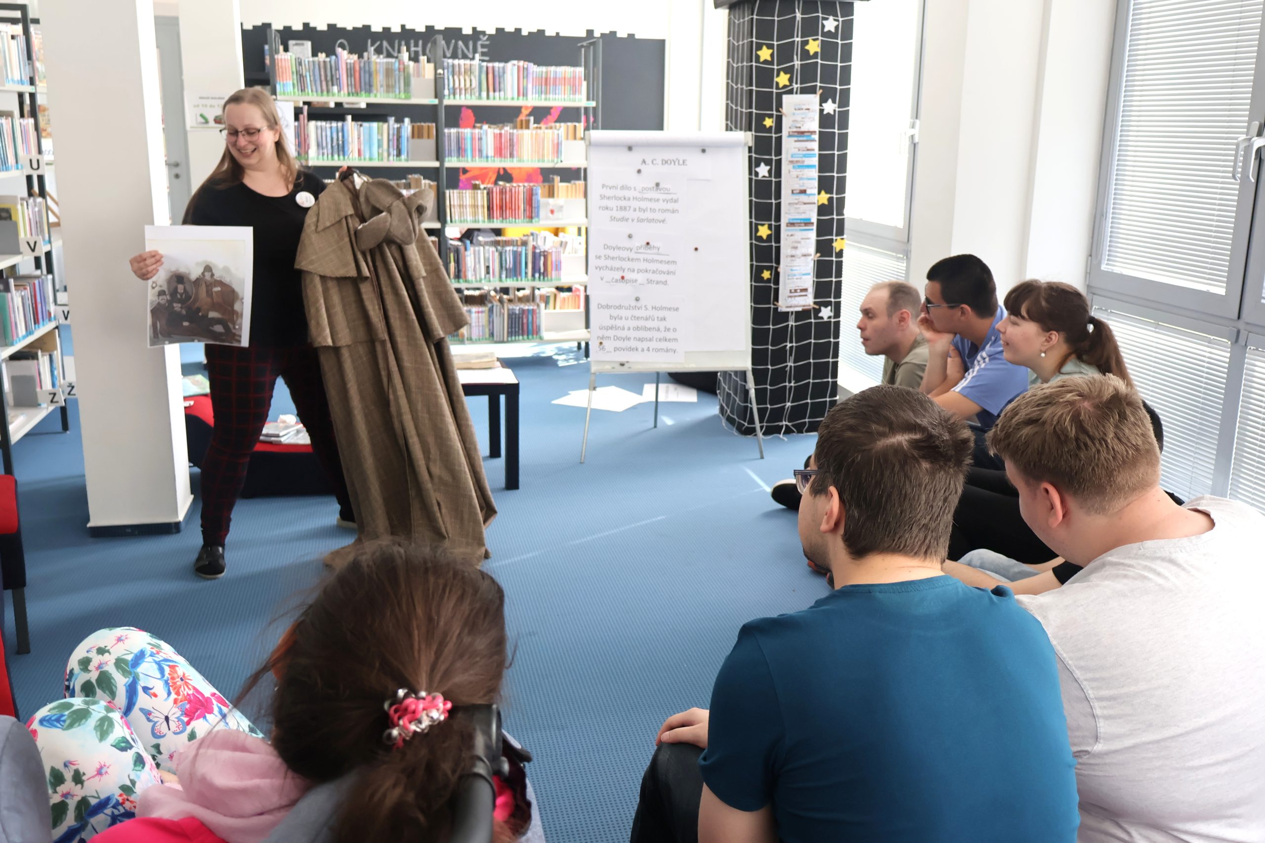 V karvinské knihovně proběhla beseda na téma slavného detektiva Sherlocka Holmese. Paní knihovnice seznámila žáky naší střední školy s autorem Arthurem Conanem Doylem a svým poutavým vyprávěním nás provedla ukázkami z knih. Součástí besedy byly také zábavné aktivity, během nichž si žáci mohli vyzkoušet, jaké to je být detektivem. Pomocí tajné abecedy se snažili rozluštit zašifrované slovo, které je dovedlo k cíli. Společnými silami se jim podařilo záhadu rozluštit. Beseda byla zábavná, ale i poučná. Moc se nám líbila.