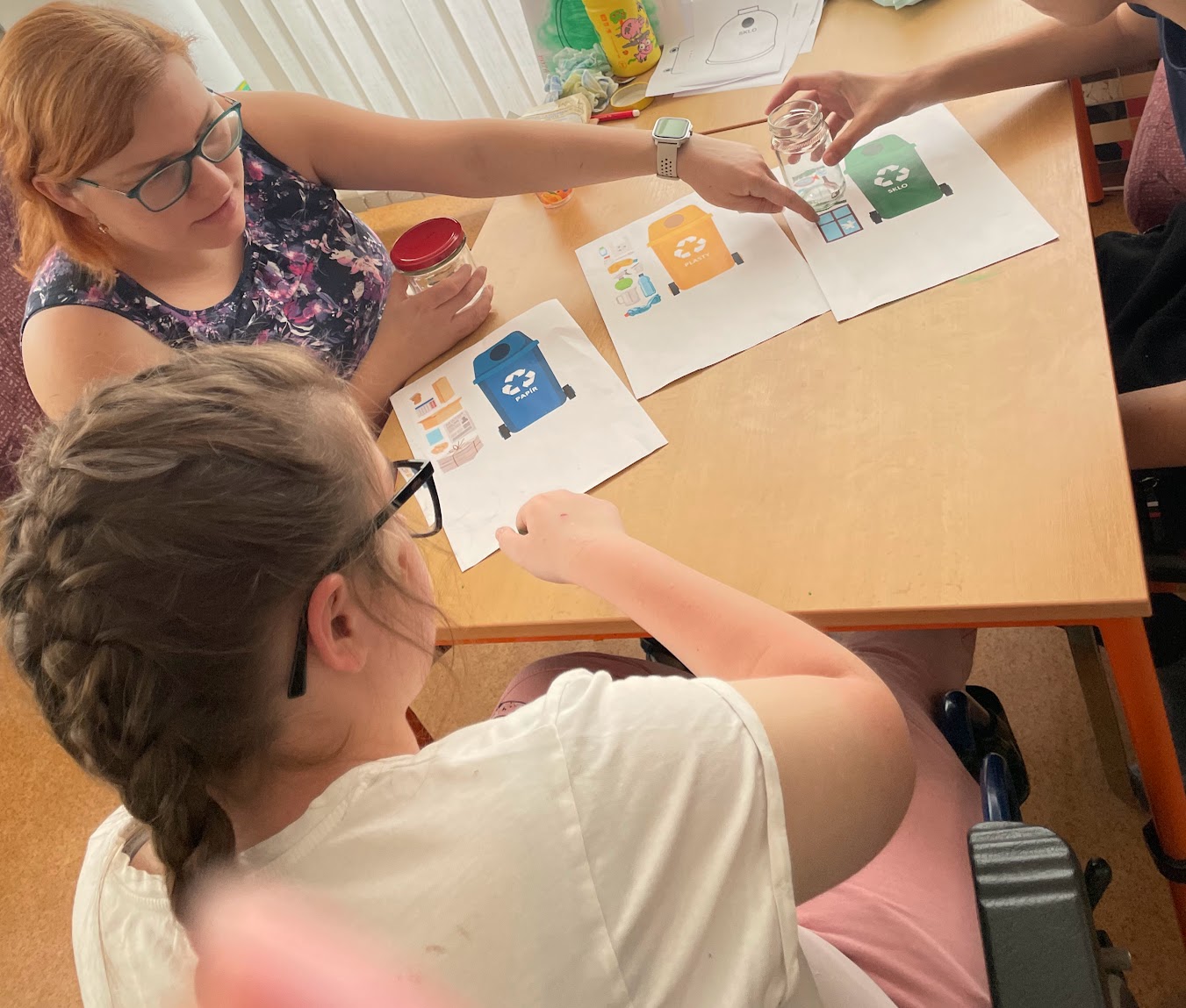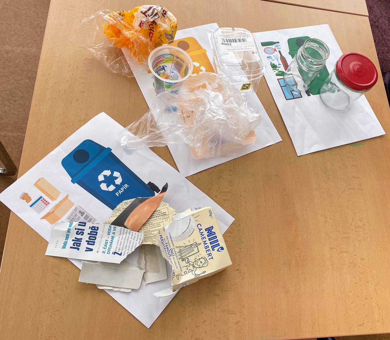 Povídali jsme si o tom, jak naši planetu chránit. Učili jsme se různé materiály třídit do kontejnerů podle barev. Nejdříve jsme si to nacvičili ve třídě a pak jsme vyrazili ven do okolí školy posbírat bezpečné odpadky a vše roztřídit do správných popelnic.