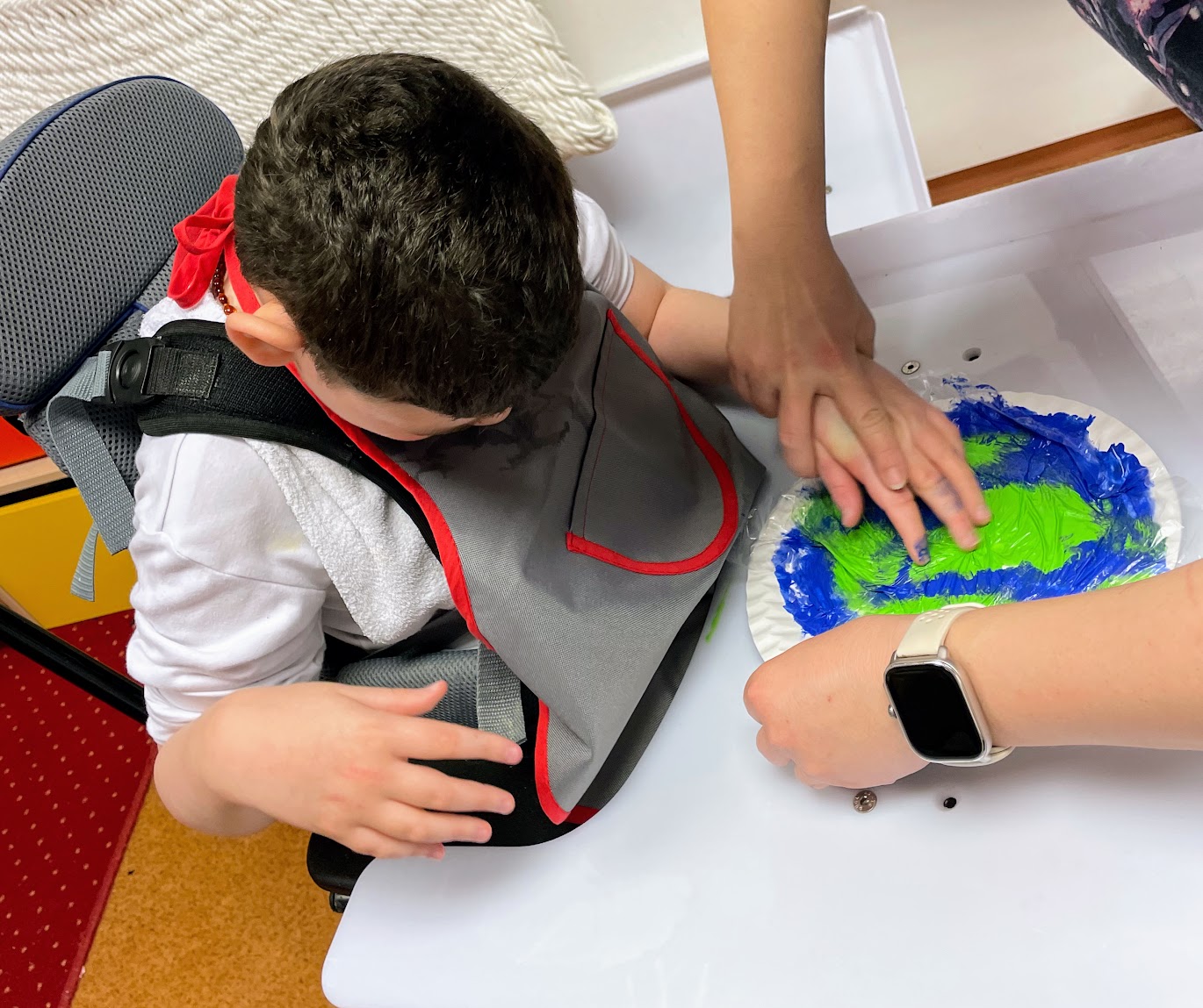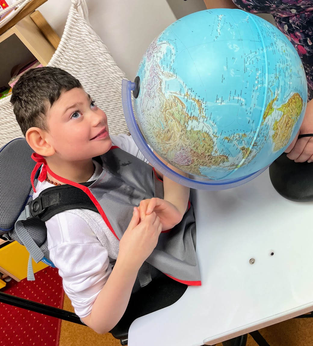 Svátek naší planety máme v naší třídě moc rádi. Seznamujeme se se Zemí pomocí globusu, příběhů, tvoření i praktických činností. Tento rok jsme se učili poznávat různé materiály – poslouchali jsme, jak šustí papír nebo plast, jak cinká sklo a jak chladí sklenička. Určovali jsme různé vlastnosti materiálů – co je tvrdé, měkké apod.