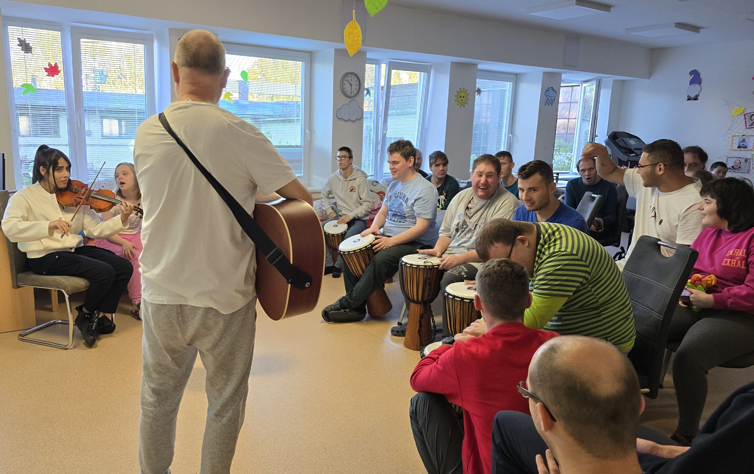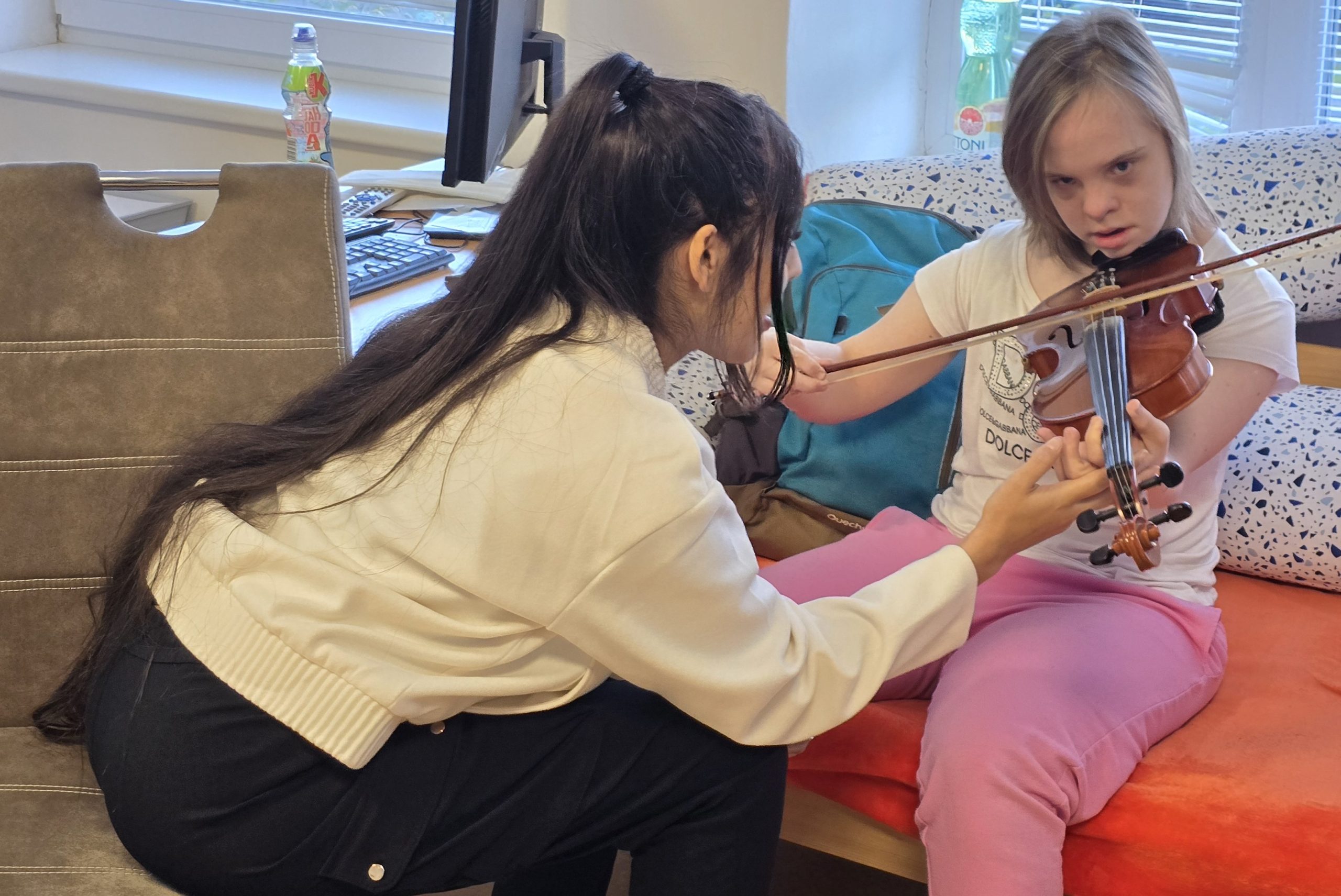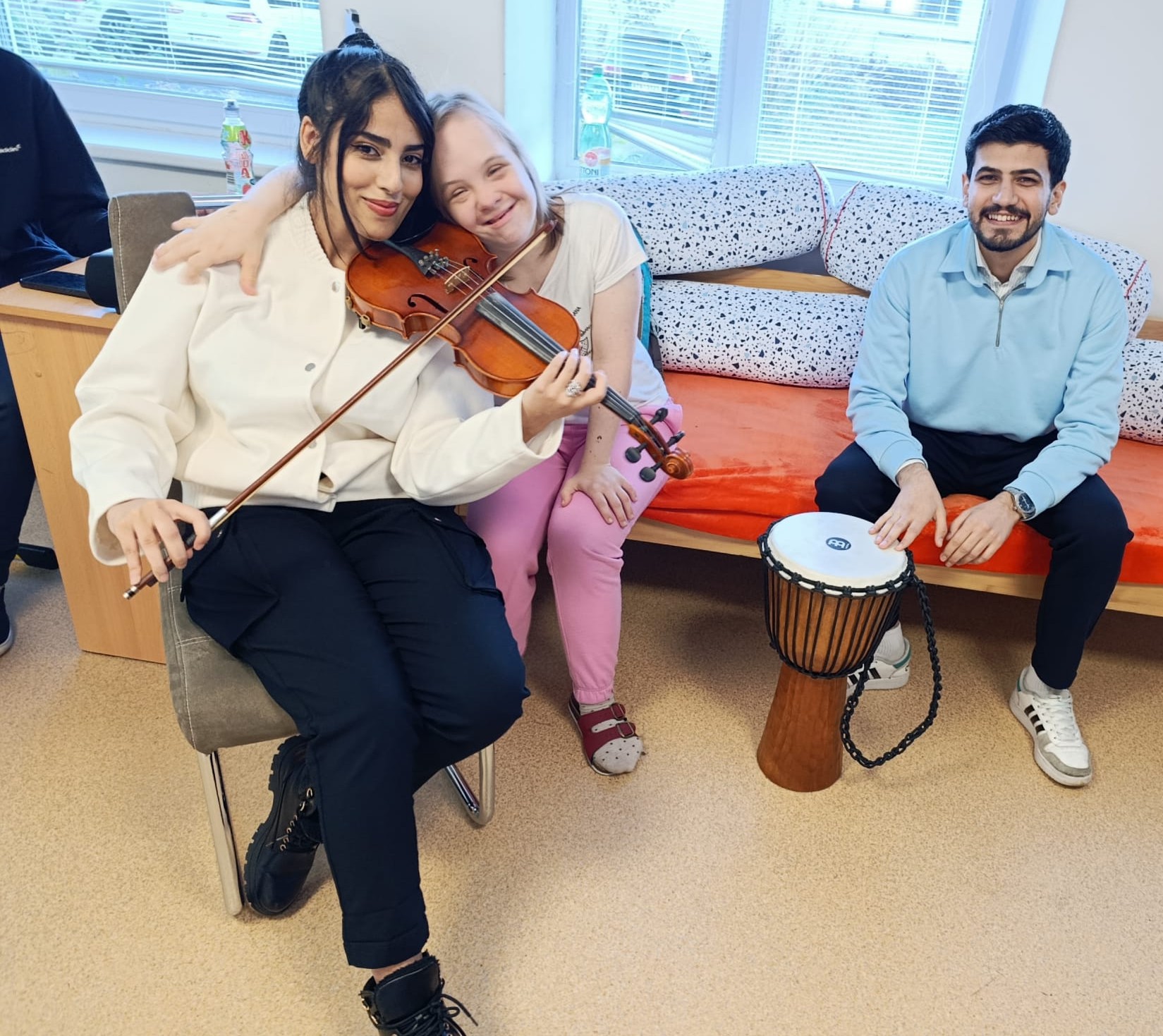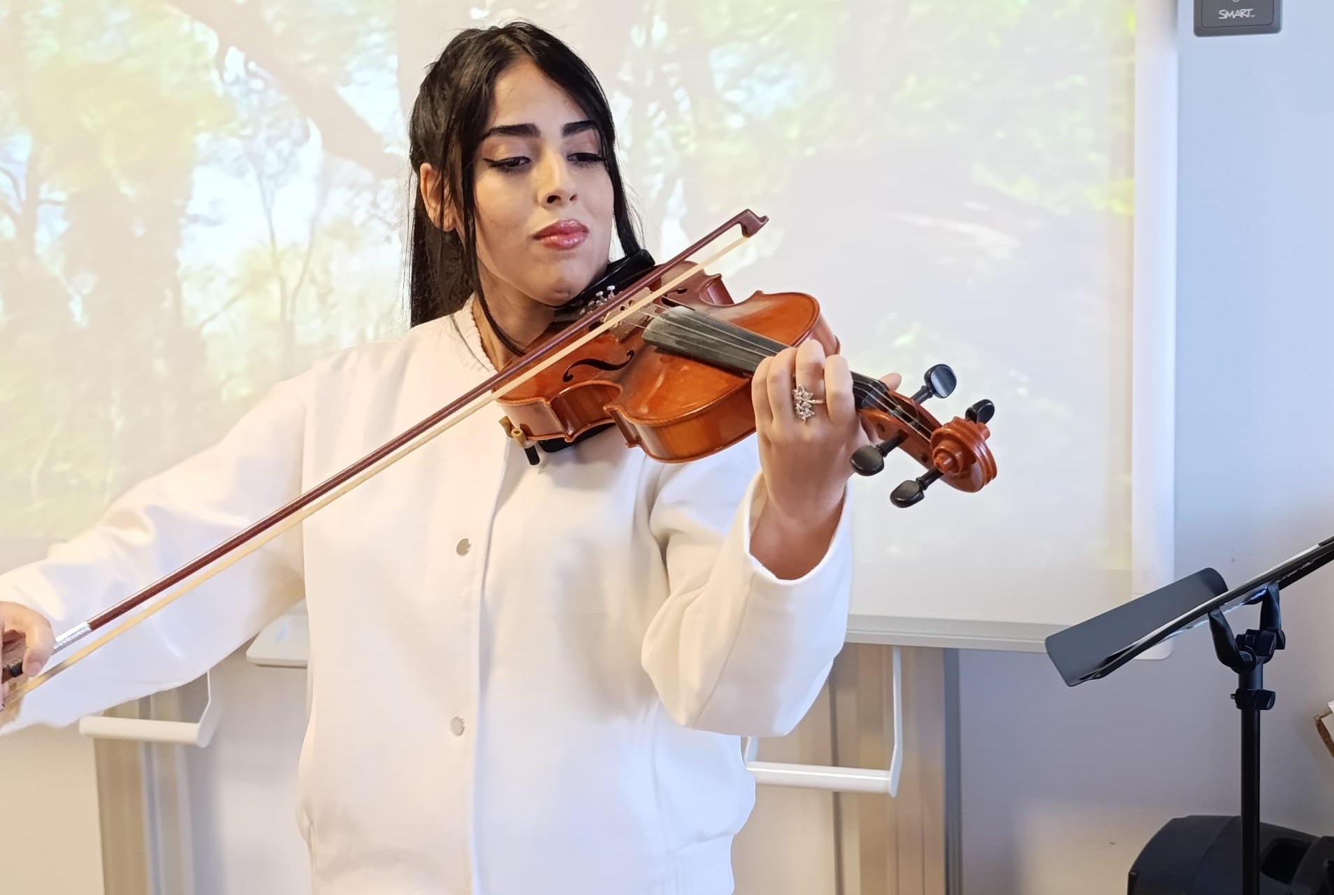 Naši střední školu v Ostravě navštívila v rámci dobrovolnického programu Ahlam Bell Mkadem, talentovaná umělkyně z Maroka, která letos působí ve Slezské diakonii v DUHOVÉM DOMĚ Ostrava. Ahlam je ve své domovině známá jako zpěvačka a houslistka, která vystupuje na místních festivalech. Při vystoupení v naší škole zahrála několik skladeb, představila žákům housle zblízka a nakonec nás na housle doprovázela při společném zpěvu několika oblíbených českých lidových písní. Bylo to krásné setkání, které našim žákům ukázalo, jak hudba spojuje kultury.