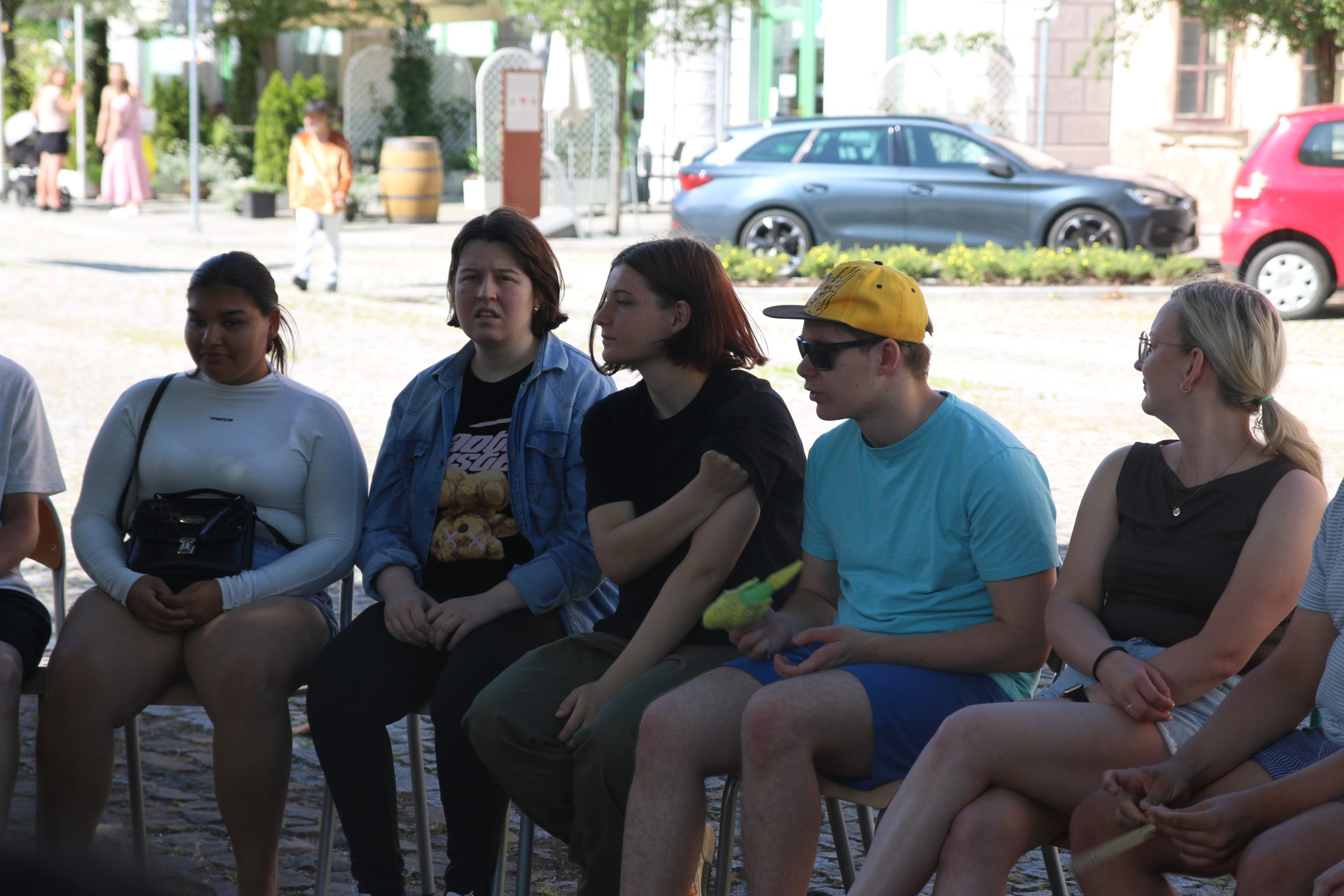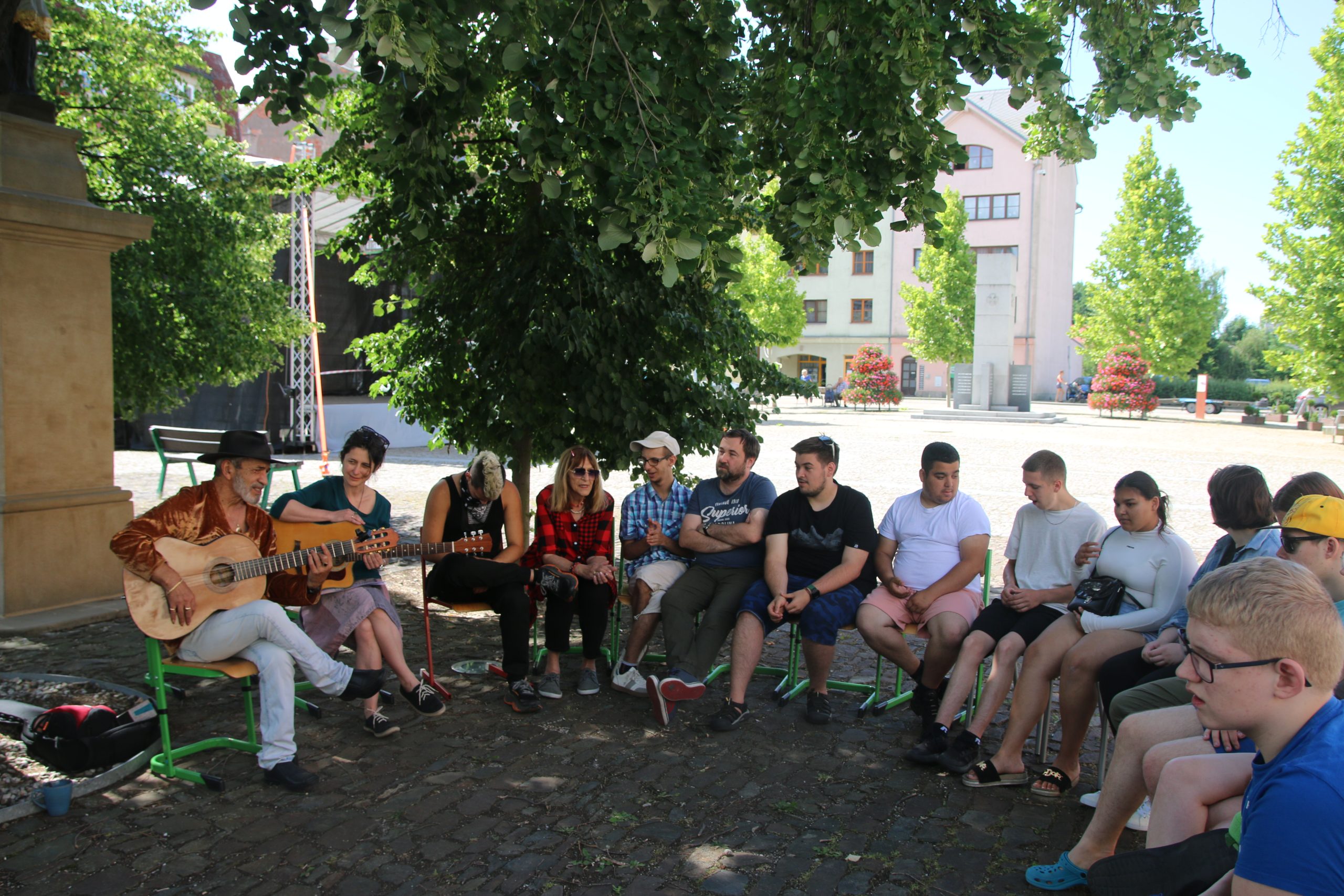 Před závěrem školního roku jsme se spolu rozloučili zpěvem písní a dokonce i tancem na náměstí Svobody ve Starém Bohumíně před naší školou. Na kytaru doprovázel a o výběr písní se postaral Ota Maňák ze skupiny Sluníčko. Popřáli jsme si krásné prázdniny a další pěkné akce u nás na náměstí a ve škole.