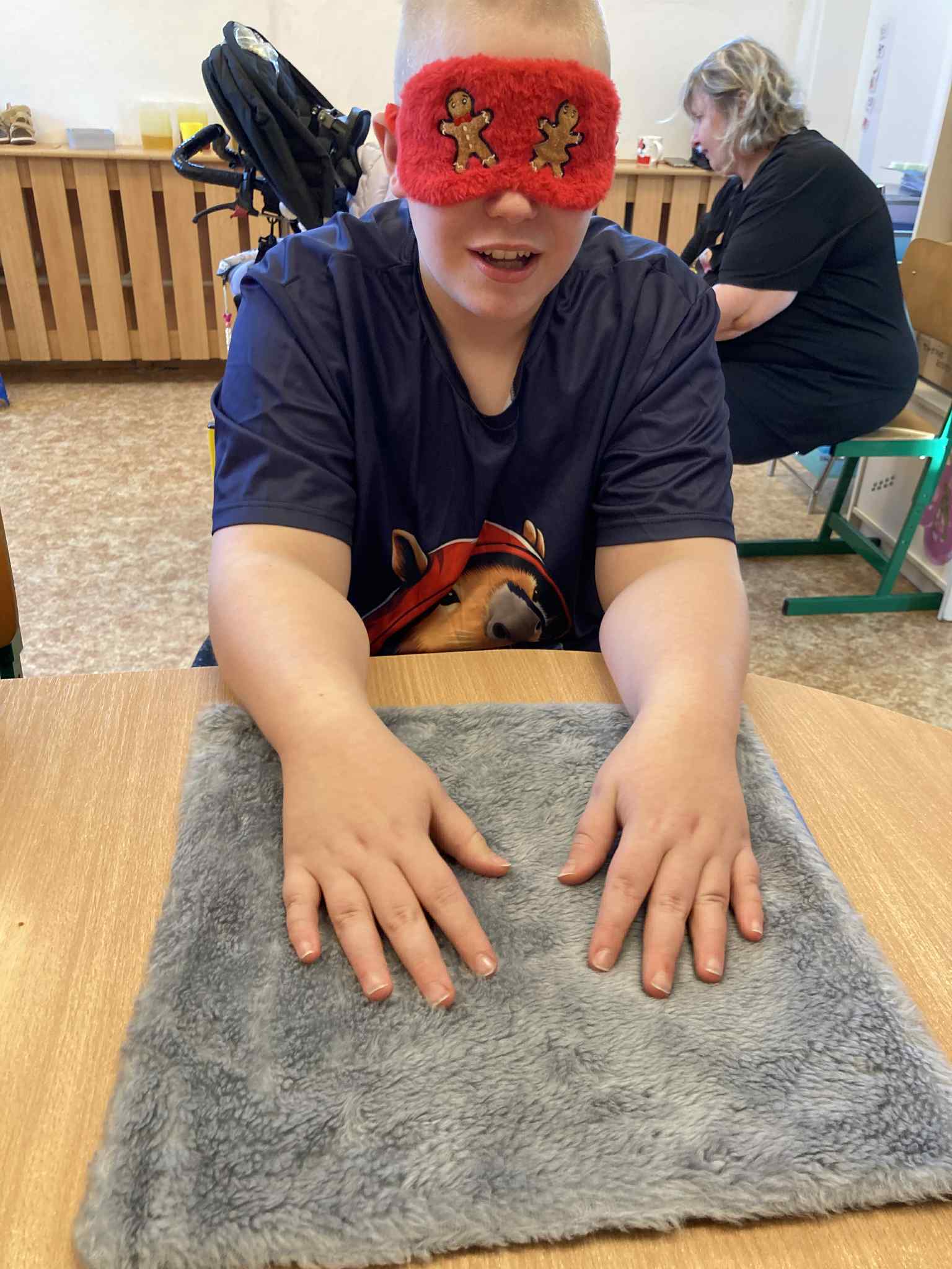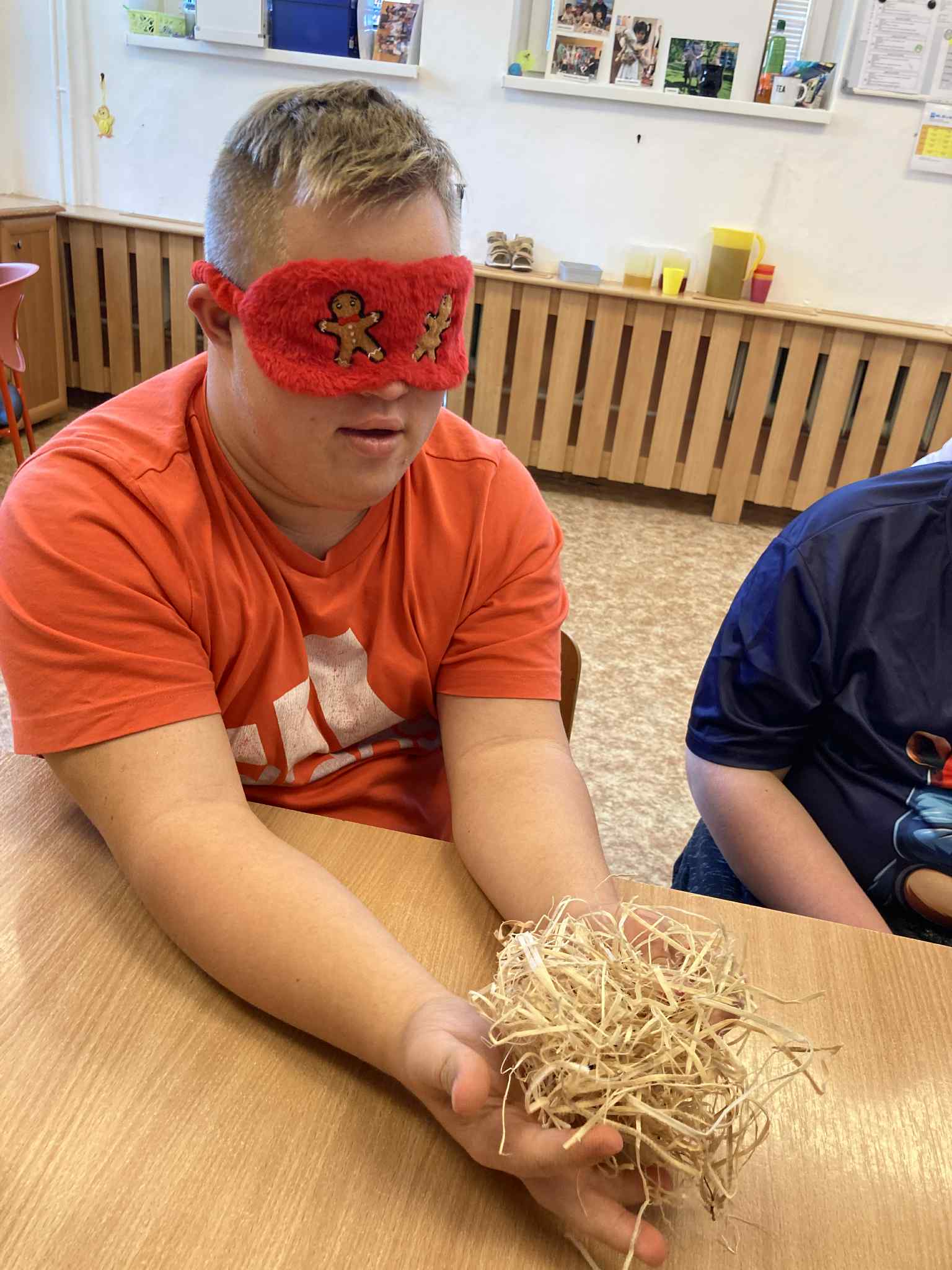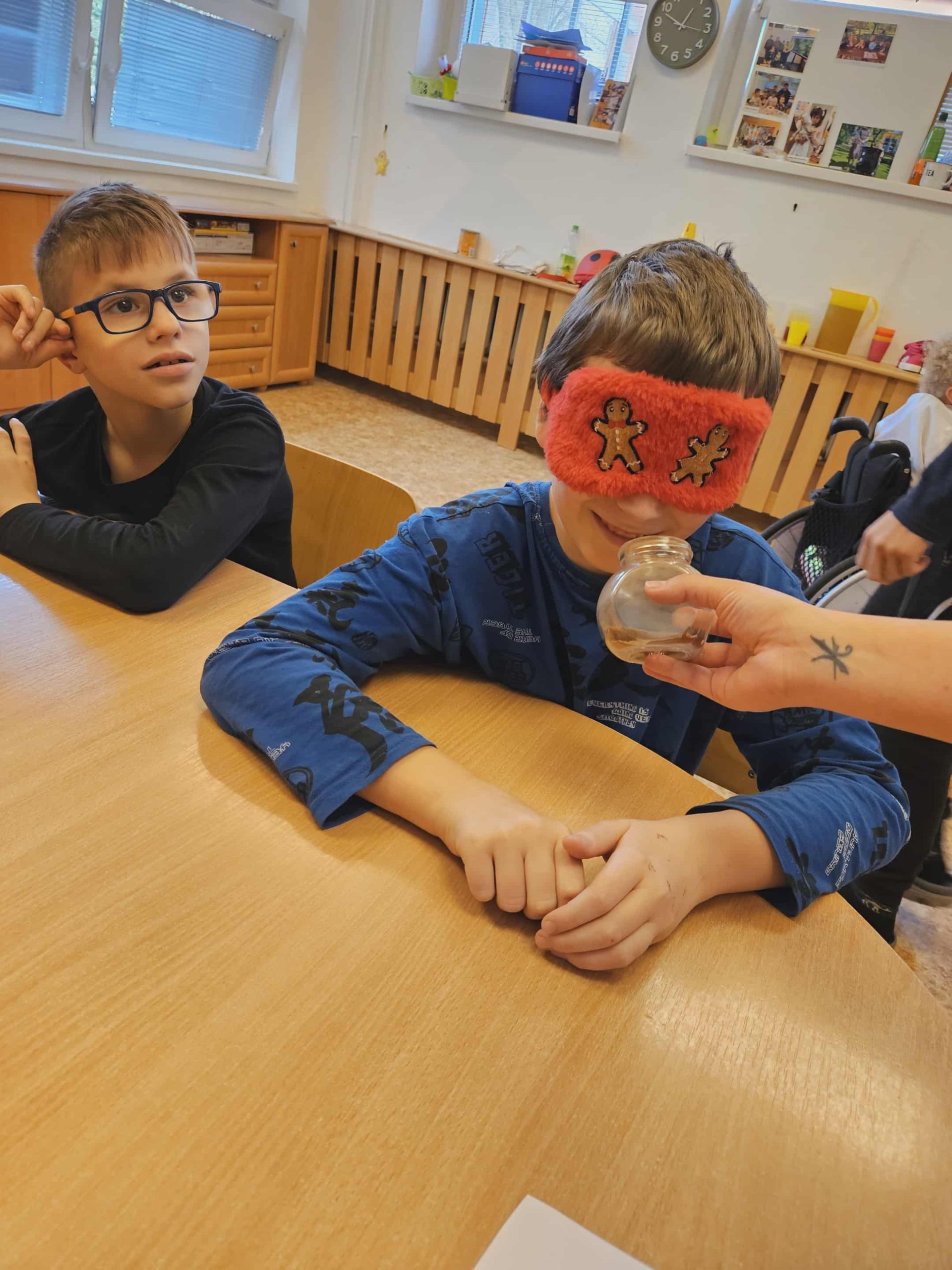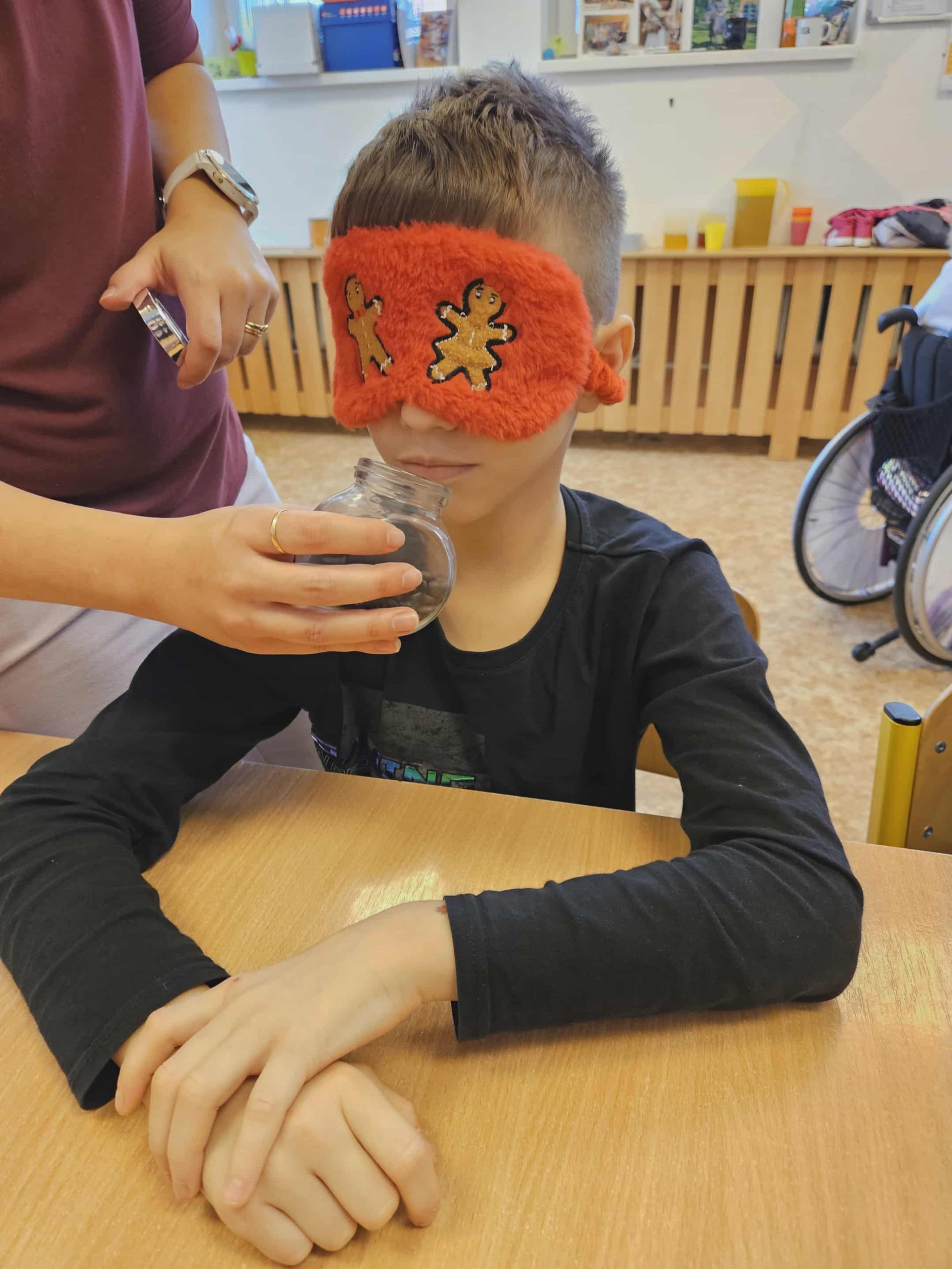 13. listopadu si celosvětově připomínáme den nevidomých a slabozrakých lidí. Ve školní družině jsme se rozhodli, že se pokusíme děti upozornit na každodenní problémy a potřeby nevidomých lidí. V místnosti senzorické integrace jsme si vytvořili jednoduchou překážkovou dráhu, kterou děti nejprve zdolaly běžným způsobem, avšak následně jim byl zrak zakryt škraboškou. Pedagogičtí pracovníci žáky navigovali a povzbuzovali. Po počátečním ostychu se děti osmělily a všechny se do aktivity krásně zapojily. Se škraboškou na očích žáci následně absolvovali disciplíny jako: házení obručí na trn, ochutnávku laskomin, poznávání zvuků dopravních prostředků a identifikaci různých předmětů a materiálů hmatem. Každý žák si mohl vyzkoušet dioptrické a sluneční brýle a ukázali jsme si, jak vypadají základní pomůcky nevidomých a to konkrétně lupu, slepeckou hůl, vodicího psa a Braillovo písmo. Na závěr žáci dostali za svou šikovnost lízátka.