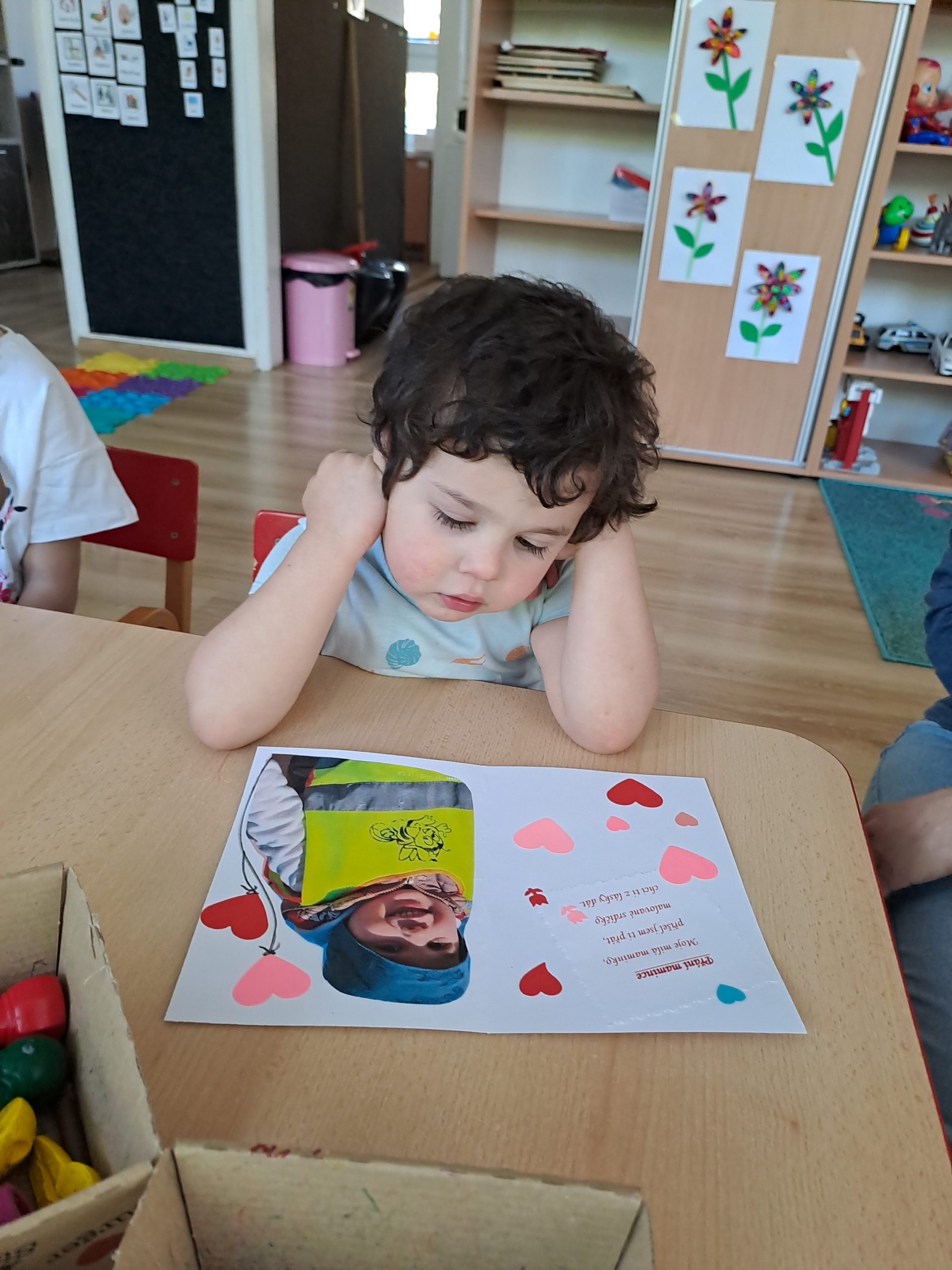 Ani letošní rok jsme nezapomněli na naše maminky, a proto si pro ně děti z mateřské školy připravily krásné překvapení. Vyrobili jsme maminkám přání s fotkou, a také jejich portrét. Děti dostaly obrázek hlavy, na který pak dokreslovaly vlasy, části obličeje i různé doplňky. Když jsme potom maminkám předávali dáreček, byly všechny dojaté a přáníčko se jim moc líbilo.
