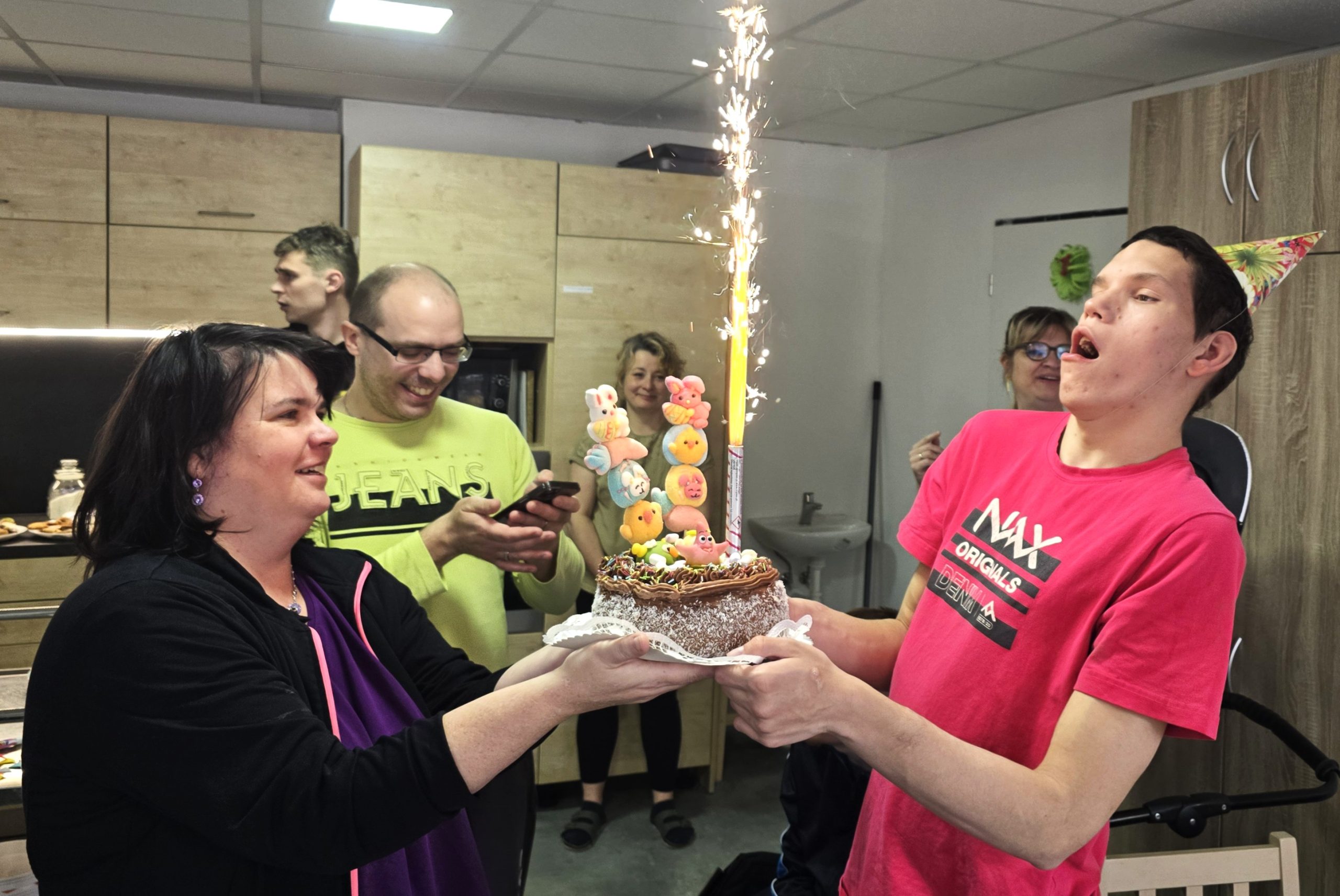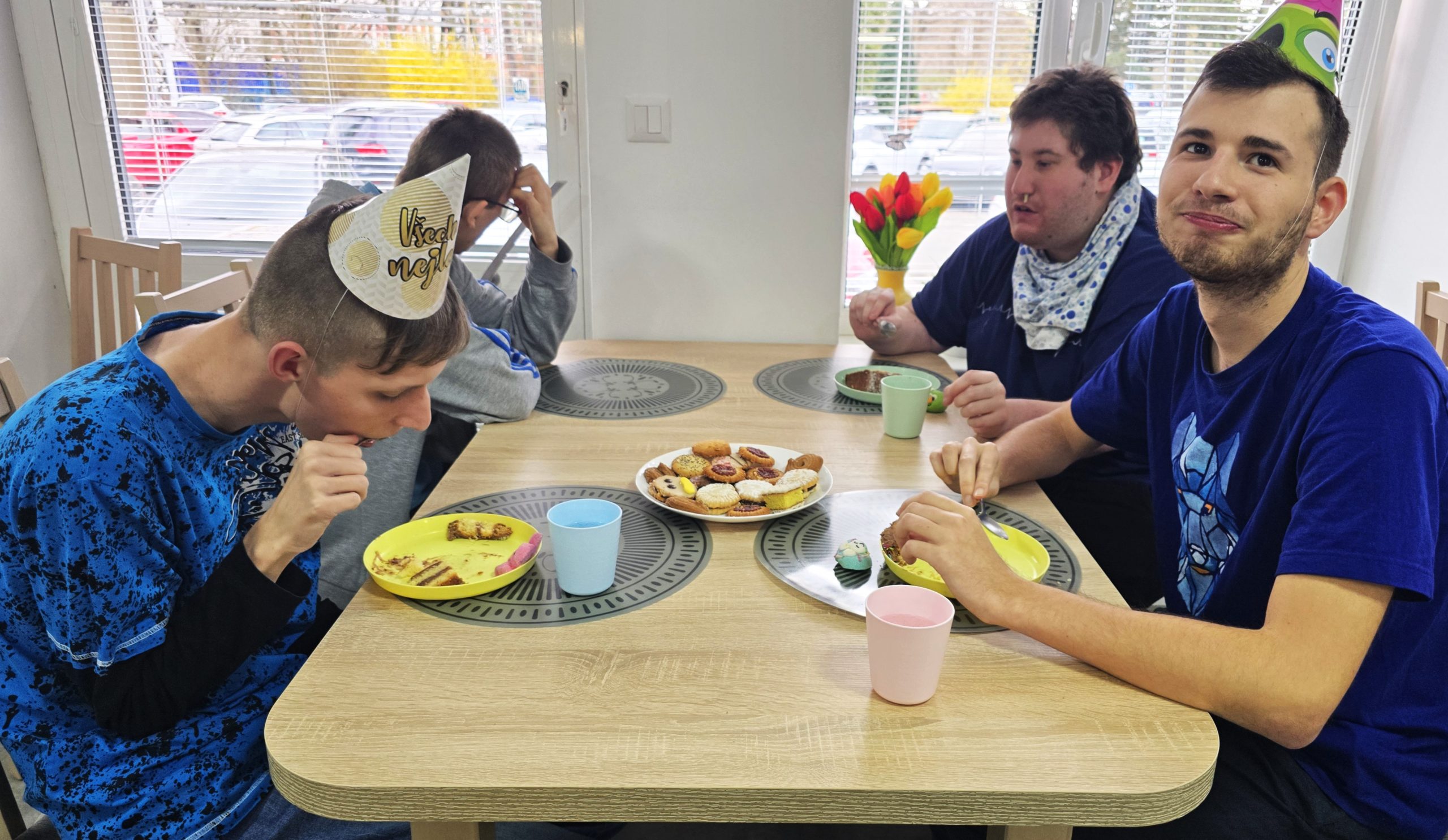 Jelikož v dubnu slaví narozeniny hned několik našich žáků, rozhodli jsme se uspořádat jednu velkou společnou slavnost. Jeden z oslavenců však měl svůj den o něco výjimečnější než ostatní. Tento žák, který žije v centru pro osoby se zdravotním postižením a vyrůstal bez rodičů, slavil své 18. narozeniny. Vstup do dospělosti je velkým milníkem pro každého. Proto zatímco drobné dárky dostali všichni oslavenci, pro našeho čerstvého dospěláka jsme připravili speciální překvapení. Dostal vlastní narozeninový dort a dárky. Chtěli jsme, aby se cítil skutečně milovaný a důležitý. Jakmile dozněla gratulace a společné přání, vypuklo to pravé narozeninové veselí s pohoštěním. Úsměvy na tvářích všech žáků byly tou nejlepší odměnou a důkazem, že se tato speciální událost opravdu vydařila.