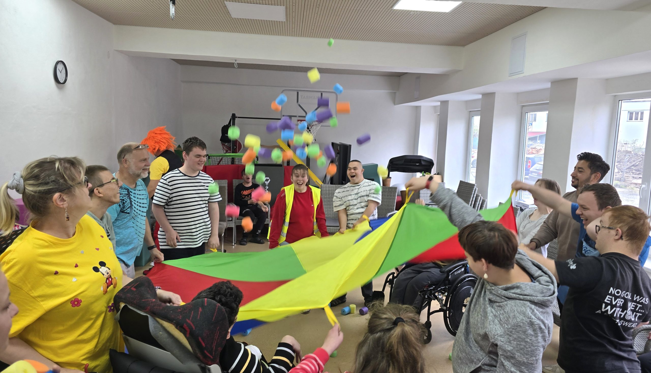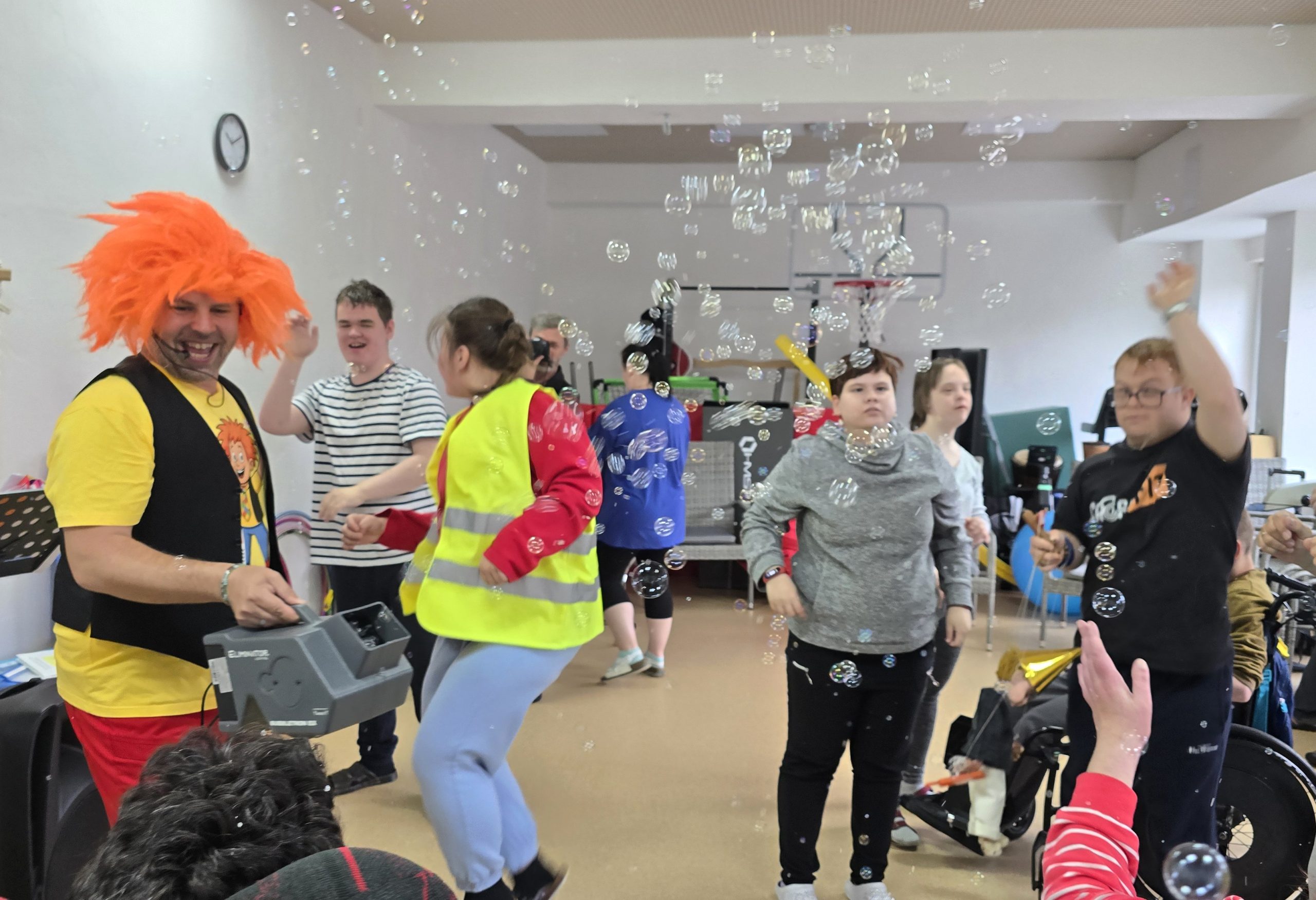 Nedávno nás opět navštívil moderátor Hitrádia Orion a DJ Jiří Prokeš. Pro naše žáky měl připravený akční interaktivní program s řadou pomůcek. Rozpohyboval naše žáky krásnou rytmickou reprodukovanou hudbou, strhnul je k různým tanečním kreacím. Na barevném padáku jsme znovu procvičovali znalost barev a snažili jsme se na něm udržet velké množství barevných míčků. Také jsme nafoukli celou řadu balónků a hráli s nimi různé hry. V průběhu svého programu DJ spustil do hudby silný vyvíječ bublin a bublinek, které chvílemi naplňovaly téměř celou místnost. Den s dýdžejem byl skvělý, dynamický, plný hudby a radosti.