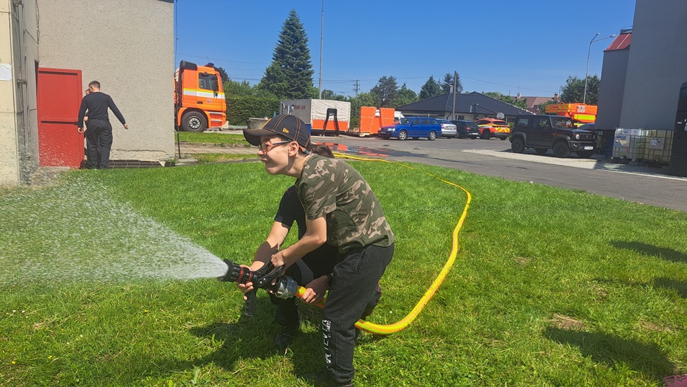 Dostali jsme nabídku navštívit základnu karvinského profesionálního sboru hasičů. To se nedá odmítnout. Naši žáci už se nemohli dočkat. Již dříve nás navštívili hasiči přímo ve škole, ale teď to bylo úplně něco jiného. Nejprve si žáci mohli sednout do kabiny velikého hasičského auta. Pak jsme se podívali na vysouvání 42 metrů dlouhého žebříku na autě, který se používá jak k hašení požáru, tak k záchraně lidí z výšek. Ale to ještě zdaleka nebylo vše. Všichni si postupně zkusili, jaké je to být v záchranném koši na konci žebříku. Samozřejmě už na zemi. A následovalo samotné hašení. A že to našim žákům šlo, i když to není nic jednoduchého držet proudnici s vodou. Hasiči nám předvedli houkání i blikání auta a také jsme viděli odjezd k zásahu. Moc jsme si tuto návštěvu užili a určitě všichni doma nemluvili o ničem jiném, než o dnešním zážitku.