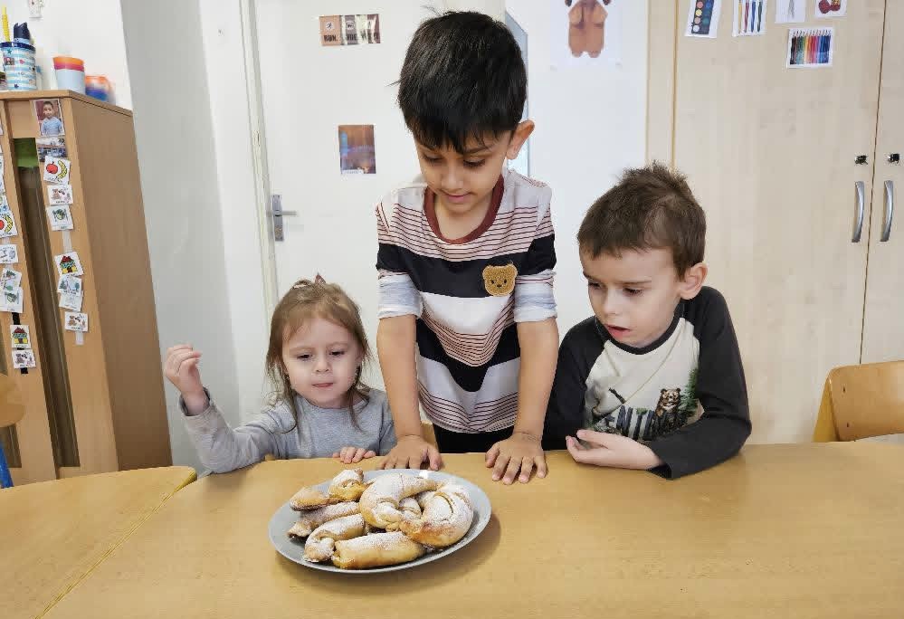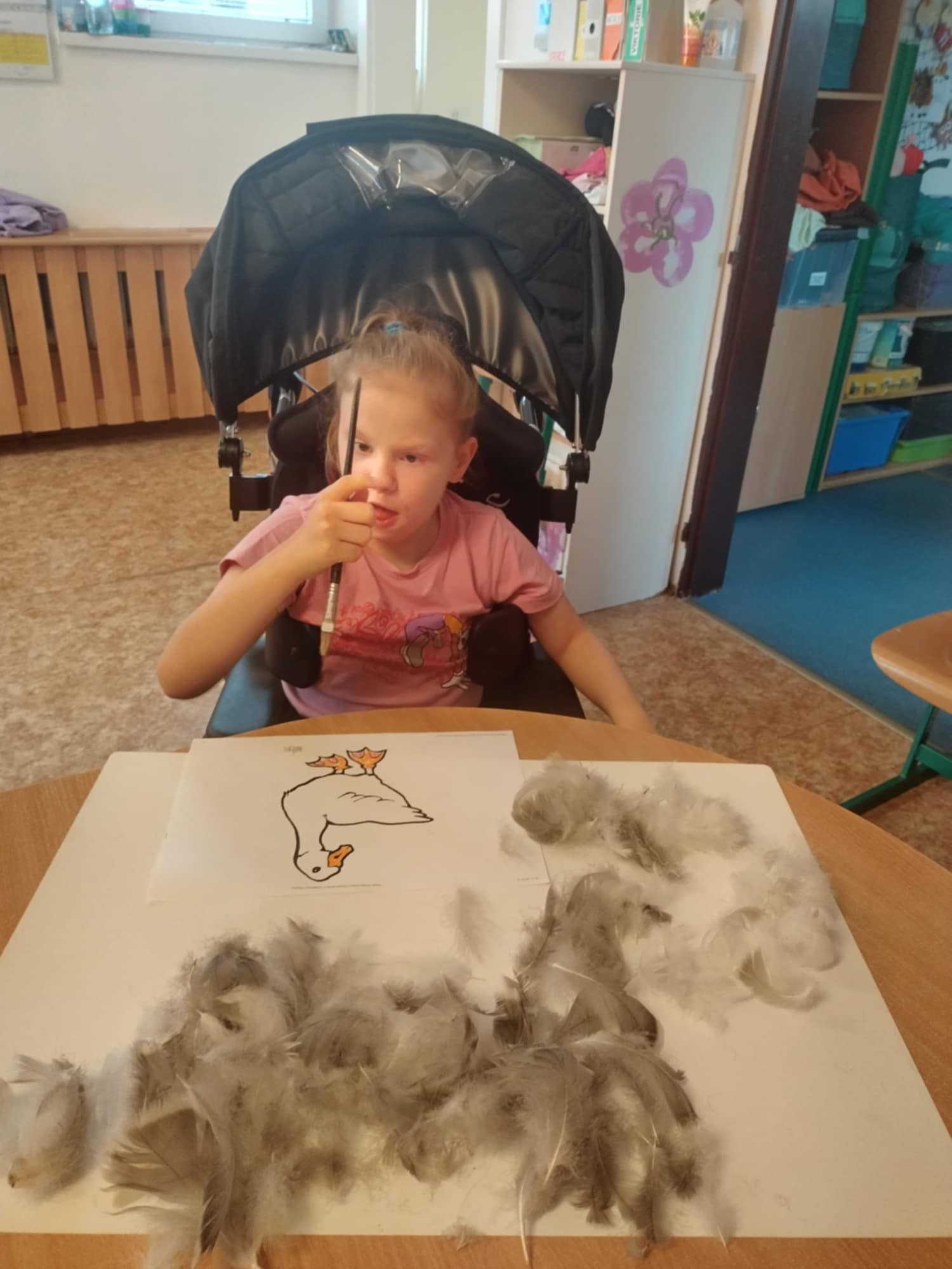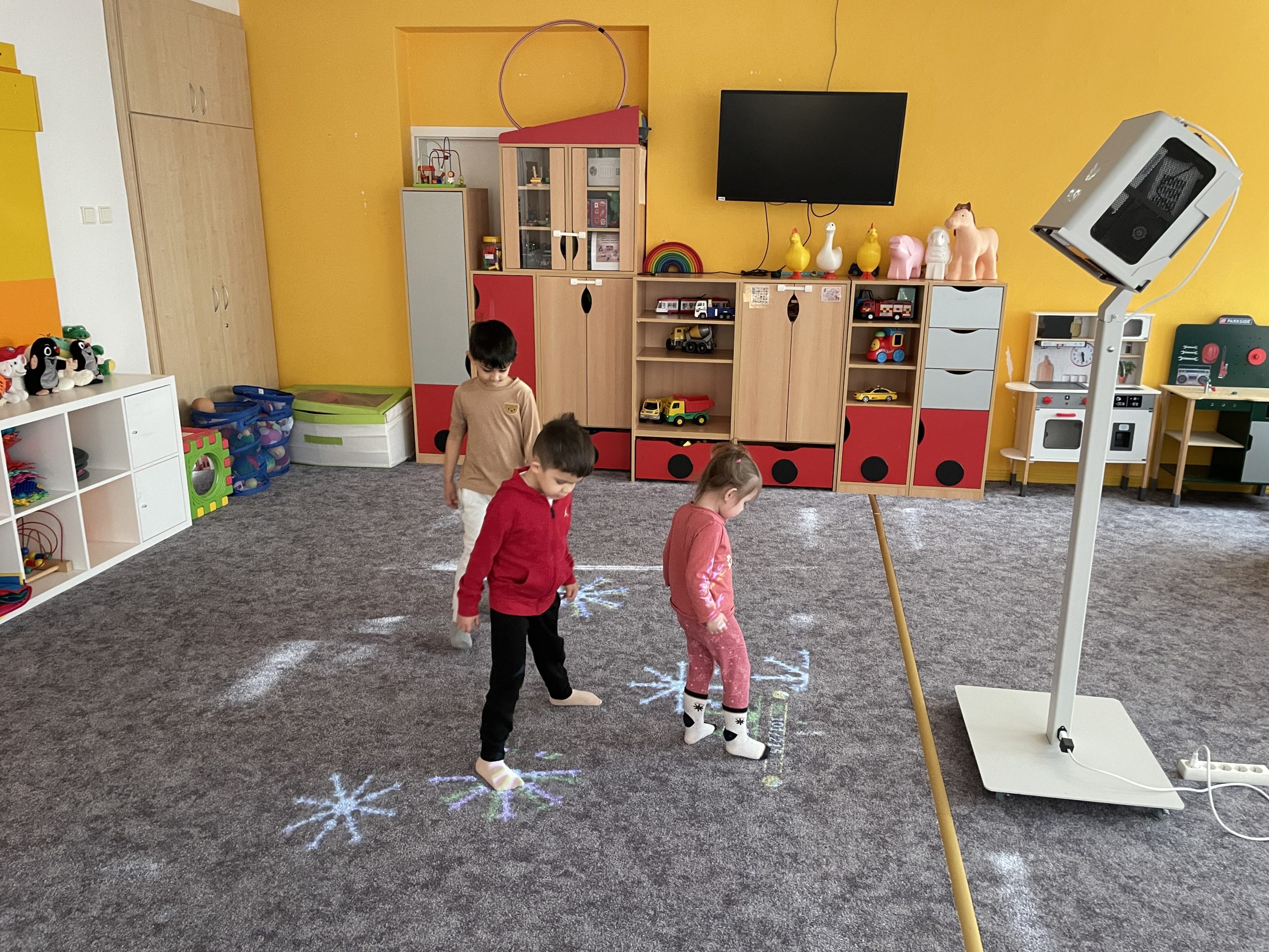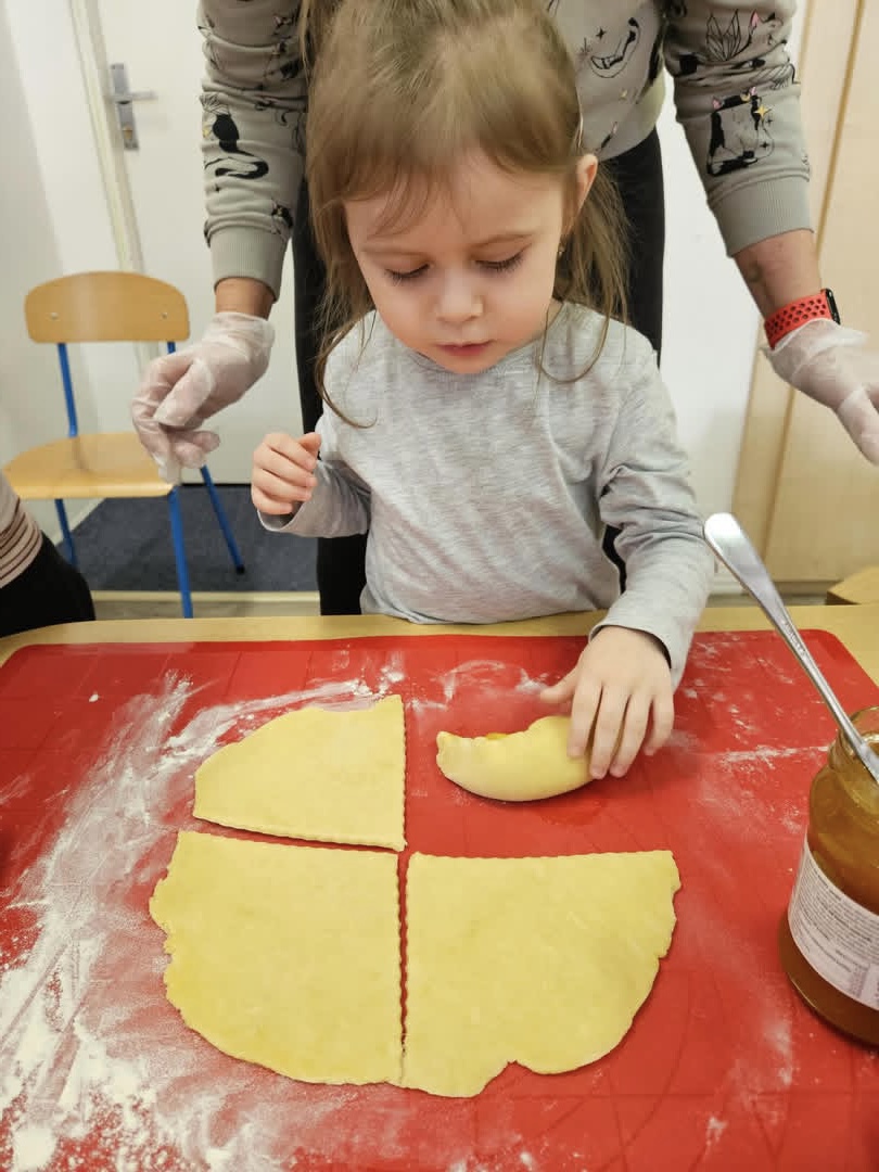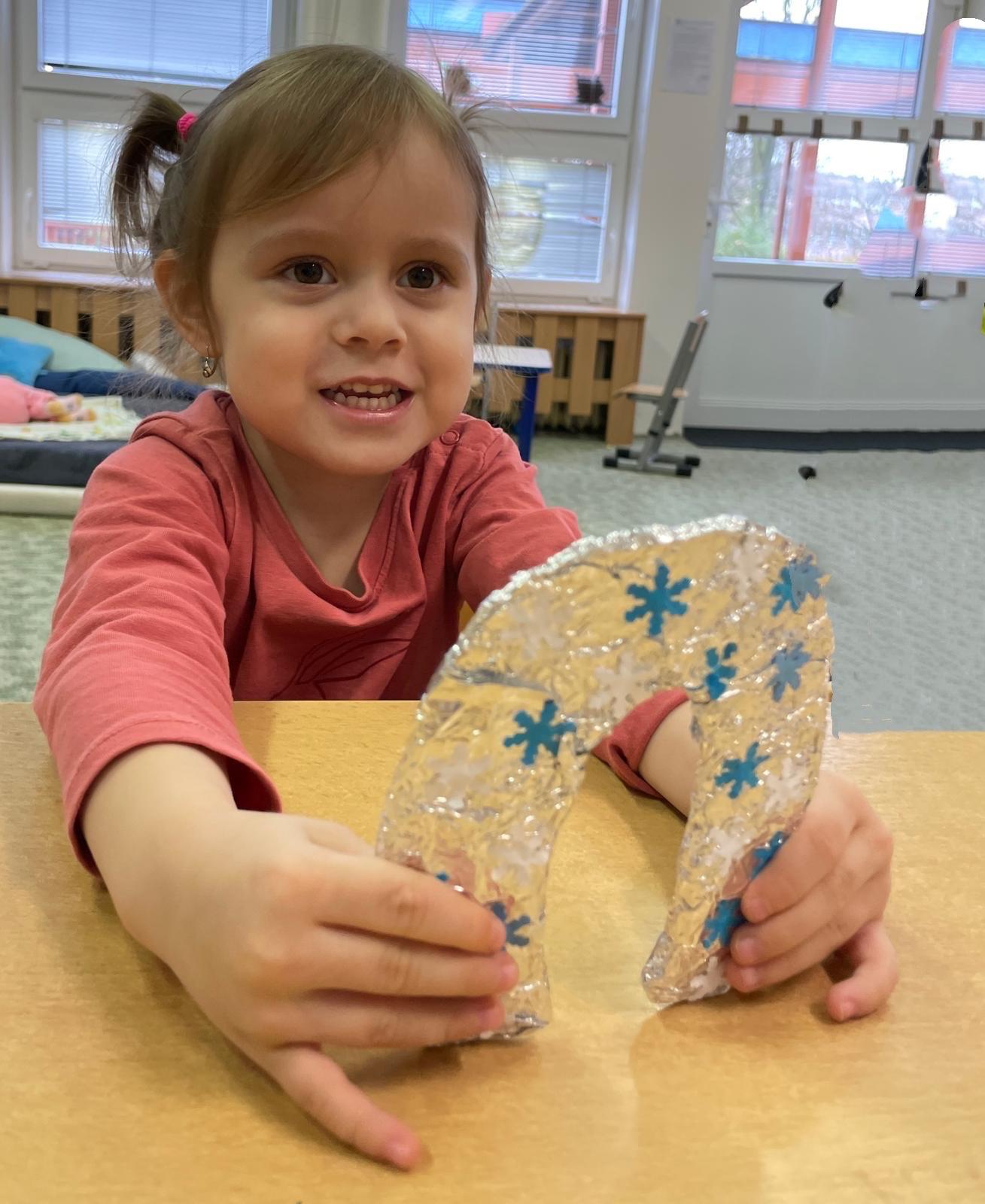 Děti a žáci si užily týden různých činností k tématu Sv. Martin. Nejprve jsme si pověděli o tom, kdo Svatý Martin byl, o křesťanské legendě, která říkaá , že se rozdělil se žebrákem o svůj plášť. Hezké povídání o něm měl pro nás připraveno také pan farář na své návštěvě naší pobočky. Děti se dozvěděly, co znamená, že Martin přijede na bílém koni, proč se peče svatomartinská husa, aj. Výtvarně jsme si Sv. Martina ztvárnili, procvičili grafomotoriku, na pracovním listu děti hledaly správné stíny k obrázkům, prstovou barvou vybarvovaly tělo husy, dokonce i plyšová husa málem skončila v troubě dětské kuchyňky :). Na vyrobených koňských hlavách si děti trénovaly jemnou motoriku – stříhání a vázání uzlíků na hřívě. Společně jsme si upekli svatomartinské rohlíčky – moc nám chutnaly. V rámci logopedických cvičení jsme foukali do peříček z opravdické domácí husičky. Vyrobili jsme si podkovy z alobalu a ozdobili je papírovými sněhovými vločkami – Martin na bílém koni totiž už po několikáté nepřijel. K pohybovým aktivitám jsme pro děti připravily překážkovou dráhu a využili jsme aktivní promítací plochu projektoru Fly Sky, na které jsou pohybující se sněhové vločky – děti po nich mohou šlapat a skákat. Vše bylo moc prima!