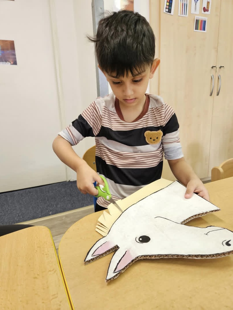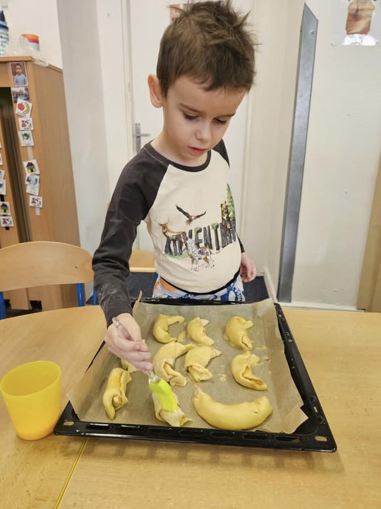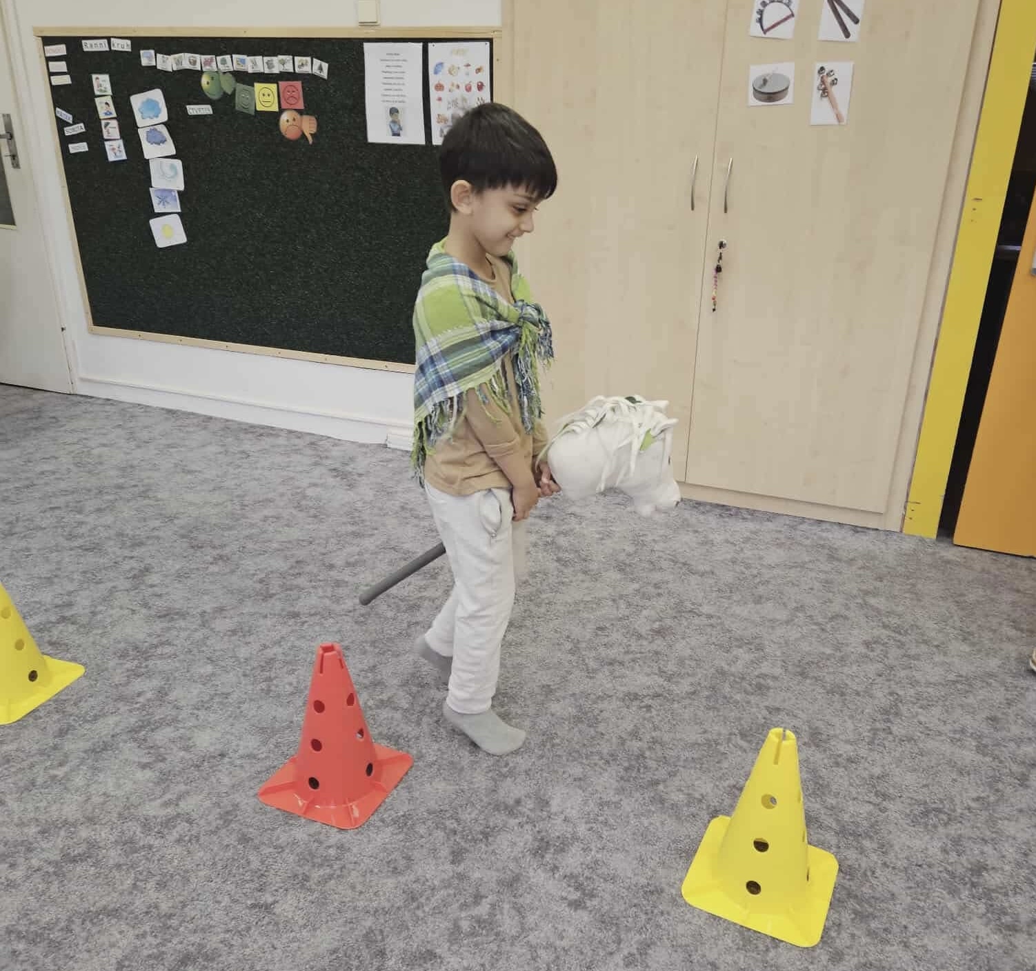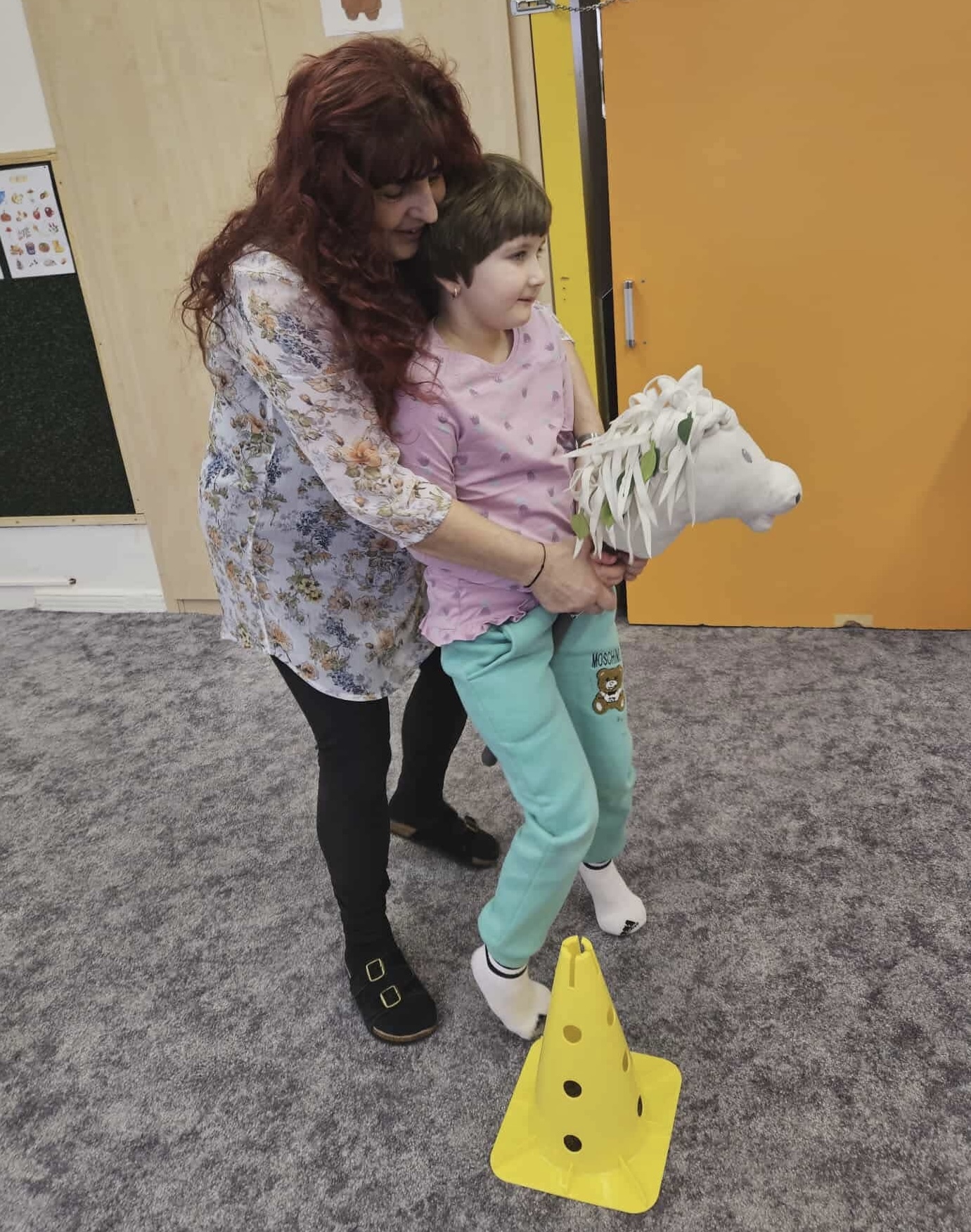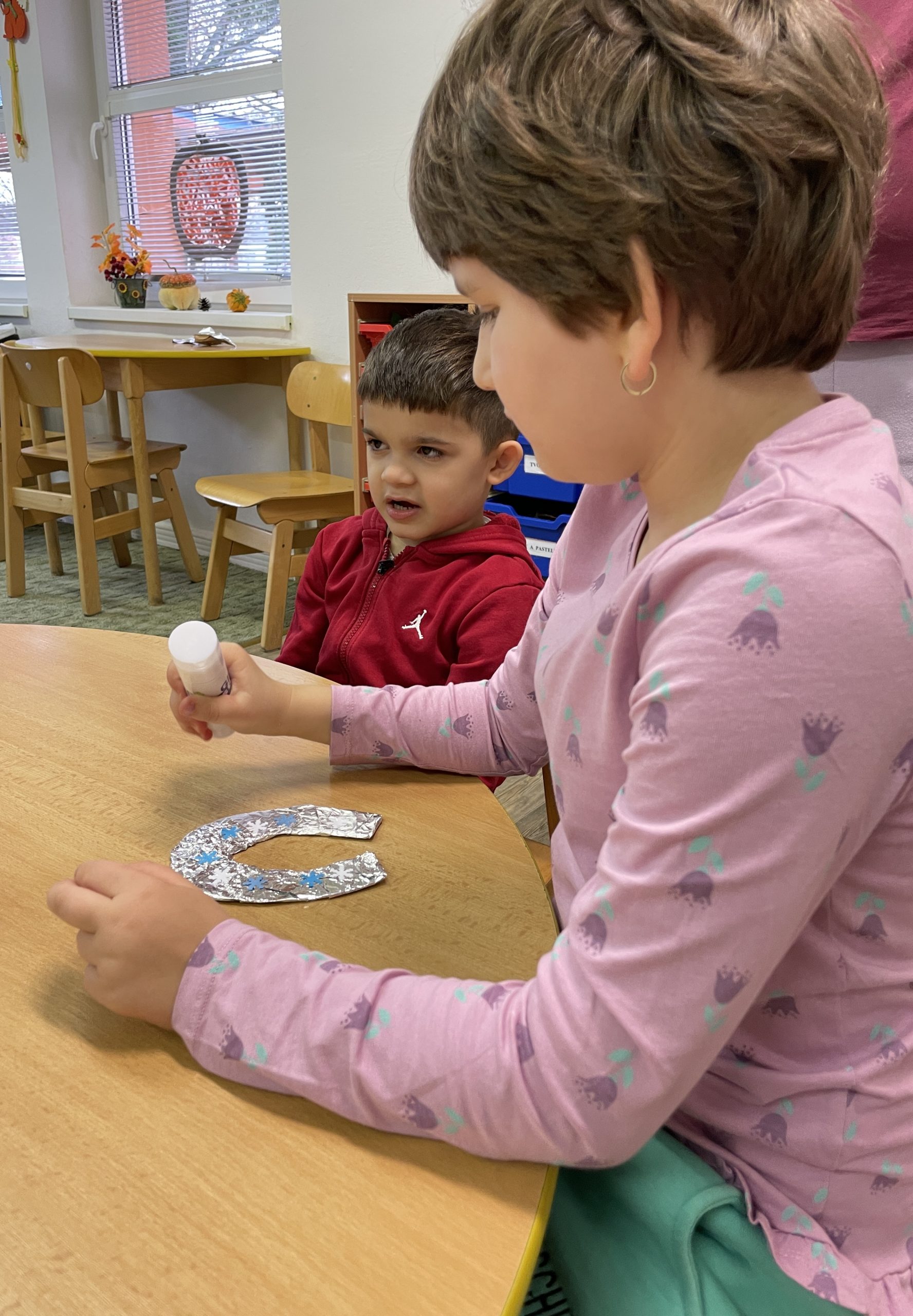Děti a žáci si užily týden různých činností k tématu Sv. Martin. Nejprve jsme si pověděli o tom, kdo Svatý Martin byl, o křesťanské legendě, která říkaá , že se rozdělil se žebrákem o svůj plášť. Hezké povídání o něm měl pro nás připraveno také pan farář na své návštěvě naší pobočky. Děti se dozvěděly, co znamená, že Martin přijede na bílém koni, proč se peče svatomartinská husa, aj. Výtvarně jsme si Sv. Martina ztvárnili, procvičili grafomotoriku, na pracovním listu děti hledaly správné stíny k obrázkům, prstovou barvou vybarvovaly tělo husy, dokonce i plyšová husa málem skončila v troubě dětské kuchyňky :). Na vyrobených koňských hlavách si děti trénovaly jemnou motoriku – stříhání a vázání uzlíků na hřívě. Společně jsme si upekli svatomartinské rohlíčky – moc nám chutnaly. V rámci logopedických cvičení jsme foukali do peříček z opravdické domácí husičky. Vyrobili jsme si podkovy z alobalu a ozdobili je papírovými sněhovými vločkami – Martin na bílém koni totiž už po několikáté nepřijel. K pohybovým aktivitám jsme pro děti připravily překážkovou dráhu a využili jsme aktivní promítací plochu projektoru Fly Sky, na které jsou pohybující se sněhové vločky – děti po nich mohou šlapat a skákat. Vše bylo moc prima!