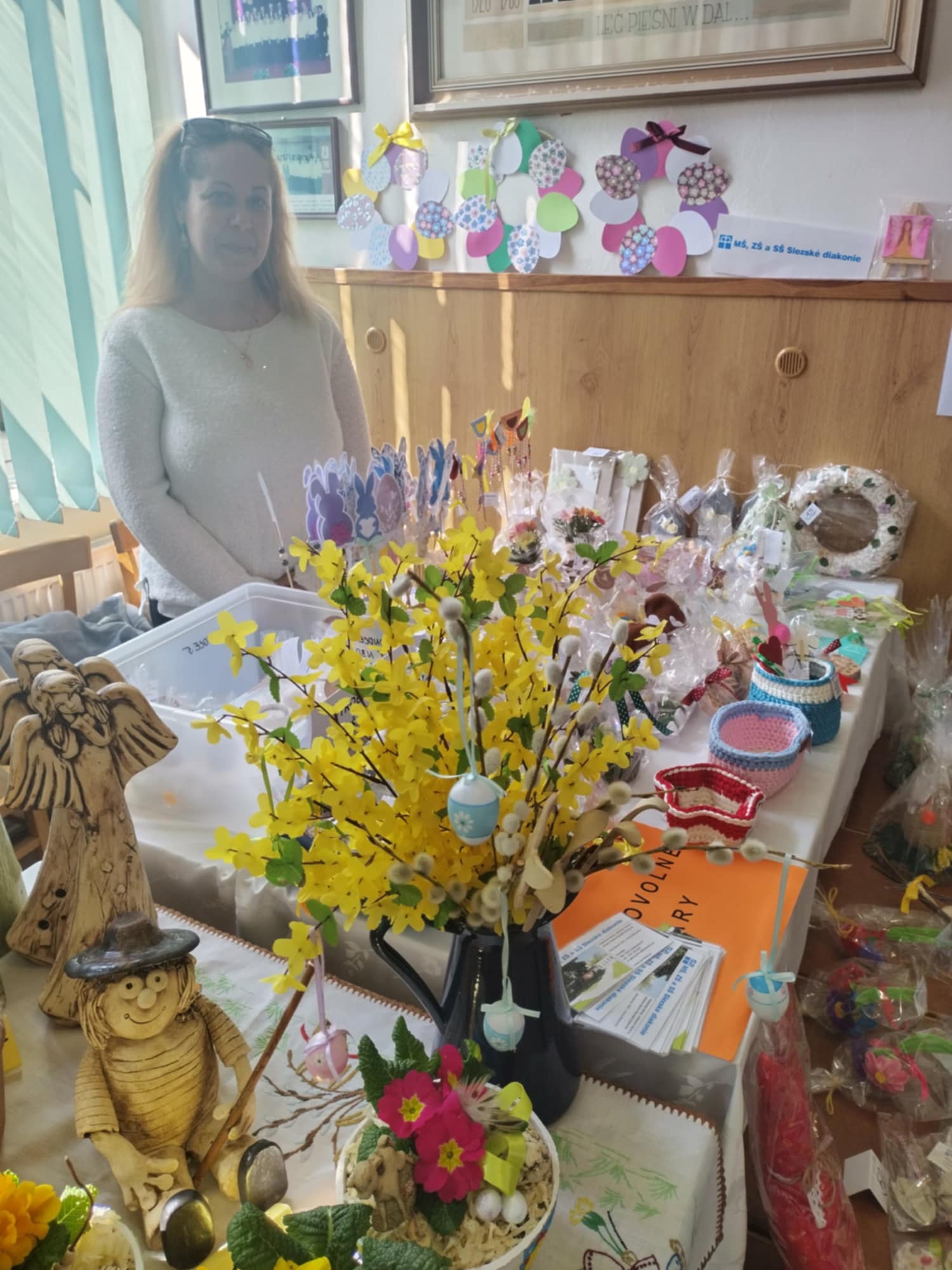 Každoročně se naše pobočka školy – MŠ, ZŠ a SŠ Slezské diakonie, odloučené pracoviště Nový Bohumín – účastní tradičního velikonočního jarmarku ve Skřečoni. Ani letos tomu nebylo jinak. Žáci spolu s pedagogy a asistenty pedagoga připravili širokou nabídku krásných výrobků, které potěšily návštěvníky i podporovatele naší školy. Na jarmarku se objevila pestrá paleta ručně vyráběných dekorací. Žáci vytvořili papírové zápichy s jarní a velikonoční tematikou, voňavá mýdélka ve tvaru úlů, barevné papírové kytice, sádrové odlitky slepiček a zajíčků, záložky do knih, velikonoční věnečky na dveře, háčkované ozdoby i papírové ptáčky. Děkujeme návštěvníkům za podporu a už teď se těšíme na další společné akce.
